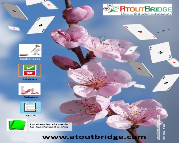 AtoutBridge.com, magazine du bridge en ligne, vous propose tous les mois les dernières actualités, des articles pédagogiques, des jeux, etc... Revenez nous voir souvent ! AtoutBridge.com, 135 rue de la Chalouère - 49100 Angers - 02 41 37 04 74 - Siret : 41141603500037 - Conditions générales de vente