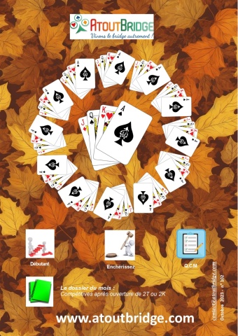 AtoutBridge.com, magazine du bridge en ligne, vous propose tous les mois les dernières actualités, des articles pédagogiques, des jeux, etc... Revenez nous voir souvent ! AtoutBridge.com, 135 rue de la Chalouère - 49100 Angers - 02 41 37 04 74 - Siret : 41141603500037 - Conditions générales de vente